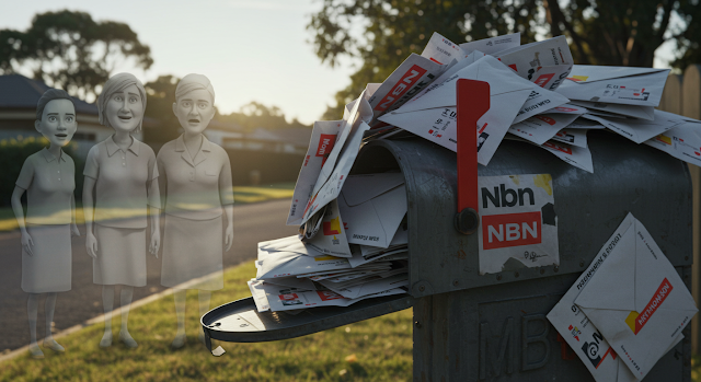 My parents happen to live in one of those suburbs, moving in to their house in 1979 they have lived at the same address for 35 years and have had the same phone number for the entire time. Now when you live in one place for this long you tend to reach that peace with the postal system where you no longer receive mail for previous residents. So it was perhaps somewhat surprising for them to receive FOUR letters for separate individuals all addressed to their residence proclaiming that 'THE NBN IS HERE'.